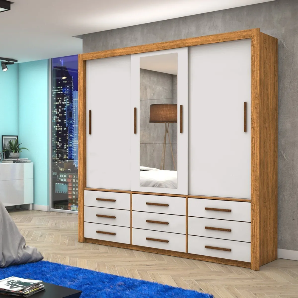 Armareo Roupeiro Anjos 3 Portas C/Espelho Central 9 Gavetas S/Pe Carioca Moveis