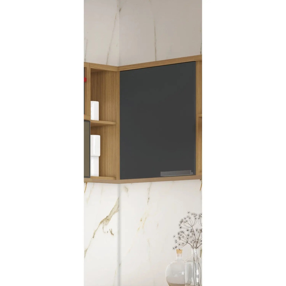 Armário Canto Itatiaia New Porto com 1 porta, corpo em MDF 15mm pintado com filete de papel, portas em MDF Pintado 15mm com filete PVC. Caixas em papelão revestidas com plástico termo retrátil, portas em chapa MDF Pintado Padrão madeirado. Com o olhar atento as novas tendências, o acabamento na cor freijó possui um tom leve amadeirado que traz requinte e faz toda diferença no ambiente. Dobradiças de 35mm, com tecnologia slow motion, aprovadas em rigorosos testículos de qualidade que proporcionam mais resistência, e suavidade ao abrir fechar e a porta.
