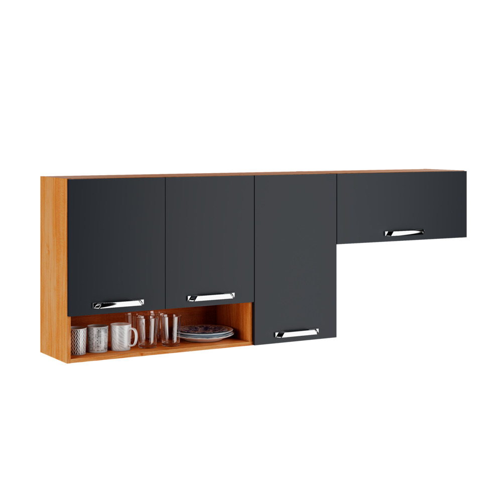 Tipo de Puxador da Porta Externo Modular Sim Tipo de Armário de Cozinha Armário Aéreo Origem do Produto Nacional Tamanho Indicado da Pia (L x C) não usa tampo Quantidade de Peças 1 Quantidade de Portas 4 Ambiente Principal Cozinha