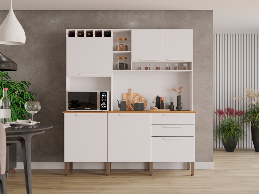Uma dica bacana para deixar a sua cozinha ainda mais bonita, organizada e completa, do jeitinho que você sempre sonhou é o Armário de Cozinha New Topázio. Ele possui diversos compartimentos para guardar utensílios e mantimentos quando você for preparar aquela deliciosa refeição, nichos para garrafas, prateleiras versáteis e um lindo e moderno design. Confeccionado com materiais de qualidade, a peça conta com 6 portas e 2 Gavetas com detalhes perfeitos para as suas necessidades do dia a dia. Aproveite e adquira este lindo armário para sua cozinha! |