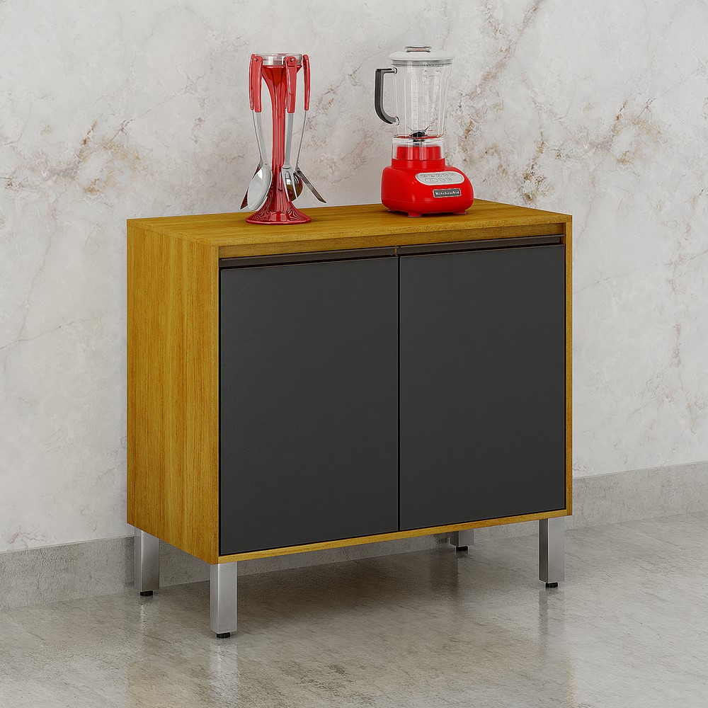 Balcão 2 Portas Eduarda, possui puxadores em alumínio bronze, pés cromados reguláveis. Estrutura de MDP 15mm e Frente MDF 15mm.
