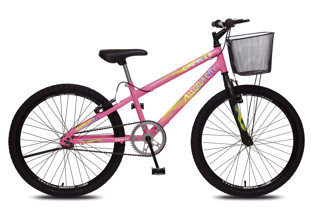Características: Marca: Colli Modelo: Allegra City Idade recomendada: a partir de 12 anos. Quadro: 13 Aro 24 Câmara de Ar Aro 24 Coroa 46D Cesto: Oval medida aço com hastes. Freio: V-brake nylon Garfo 24 Colli pintado Manopla diplomata Movimento direção comum com colar Pedivela monobloco 165x15mm Selim PVC Canote reto colli zincado Corrente grossa 1/2x1/8 Descanso lateral aro 24 Guidao downhill aço expandido 580mm com sup. soldado Macaneta de nylon 26 Movimento central 45mm com colar Pedal 1/2 Pneu 24x1.75 Roda livre 1v 18d