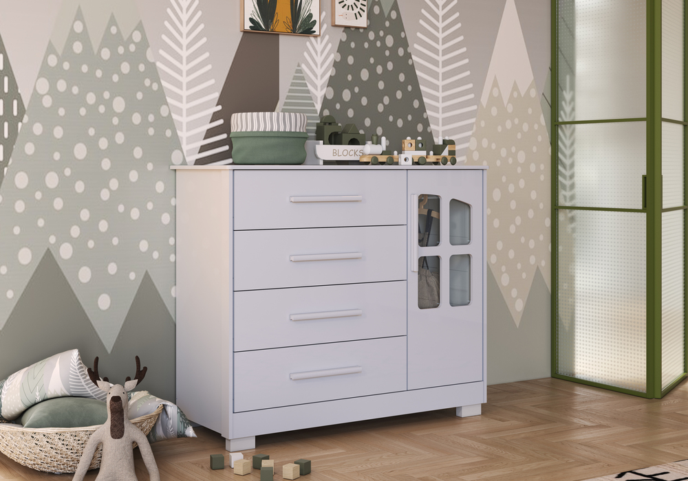 Cômoda Infantil Charlô 1 Porta 4 Gavetas - Móveis Peroba
