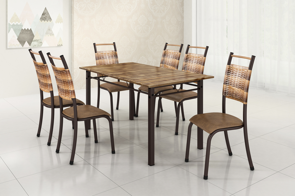 O Conjunto Chicago com base Piauí é ideal para quem busca elegância, conforto e um toque artesanal para sua sala de jantar.