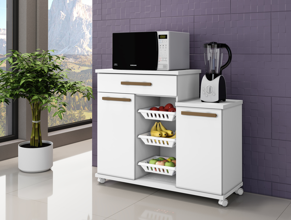 Fruteira Teresina Arte Móveis 2 Portas 1 Gaveta 3 Cestos