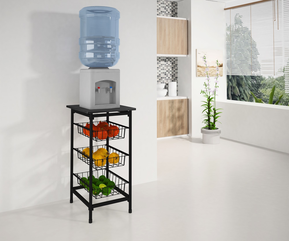 Suporta galões de água, fruteiras e pequenos eletros