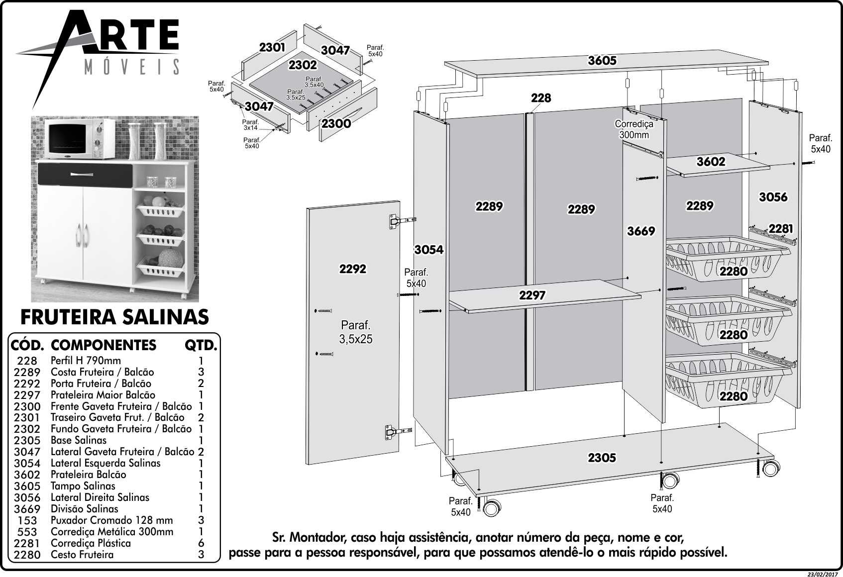 Fruteira Salinas 01 Gaveta 02 Portas e 03 Cestoss Removíveis Arte Móveis