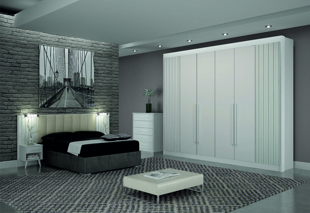 Roupeiro amplo, detalhe em ripado nas portas, 06 gavetas na parte interna, prateleiras para melhor organização. Design inovador acompanhando as tendências e garantindo assim um produto ainda mais lindo e moderno. Medidas do produto Altura: 2300mm Largura: 2350mm Profundidade: 47,5