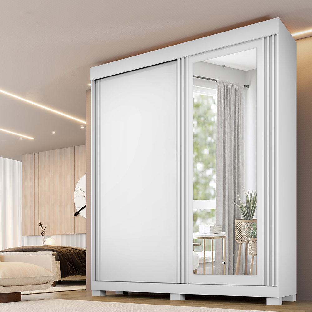 Guarda Roupa 2 Portas de Correr com Espelho 3 Gavetas Mônaco Benetil