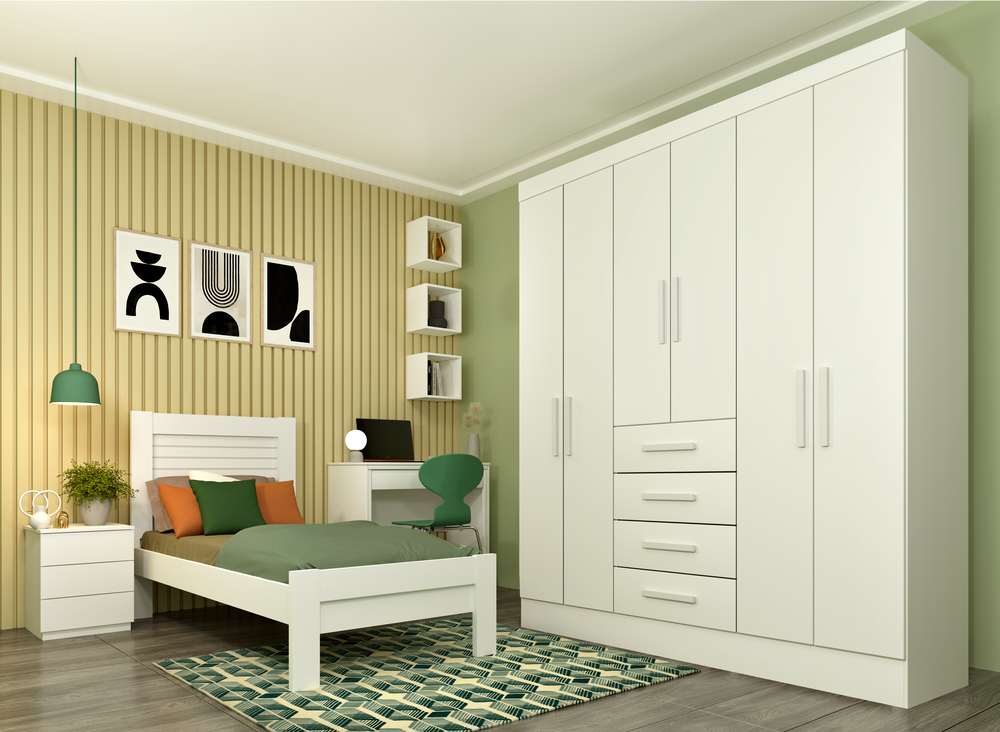 Querendo completar seu dormitório com um móvel charmoso e muito útil? Então você vai se encantar com este maravilhoso Guarda Roupa Arizona. Com MDP de qualidade na confecção e dobradiça metálica, ele é super-resistente e atraente. Os nichos, no amplo espaço interno, auxiliam na hora de organizar suas peças de roupas, seus acessórios e o que mais desejar guardar.