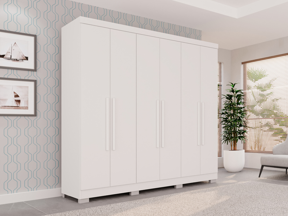 Conheça o Roupeiro Recife 6 portas, uma peça versátil e funcional para o seu espaço. Fabricado com qualidade, este roupeiro oferece soluções inteligentes para a organização do seu guarda-roupa. Destacamos características como: