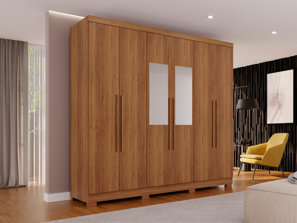 Pesos e Dimensões Altura (cm) 223 cm Largura (cm) 220 cm Profundidade (cm) 47 cm Materiais e Acabamentos Material Principal MDP Outras características Categoria Quarto>Guarda-Roupa> Características Quantidade de Portas 6 Portas Quantidade de Gavetas 04 Gavetas Tipo de Porta Toque Marca Sallêto Possui Portas Sim Possui Pés Sim Linha ou Coleção Coliseu Tipo de Guarda-roupa Casal Possui Cabideiros Sim Possui Espelhos Sim Ambiente Principal Quarto