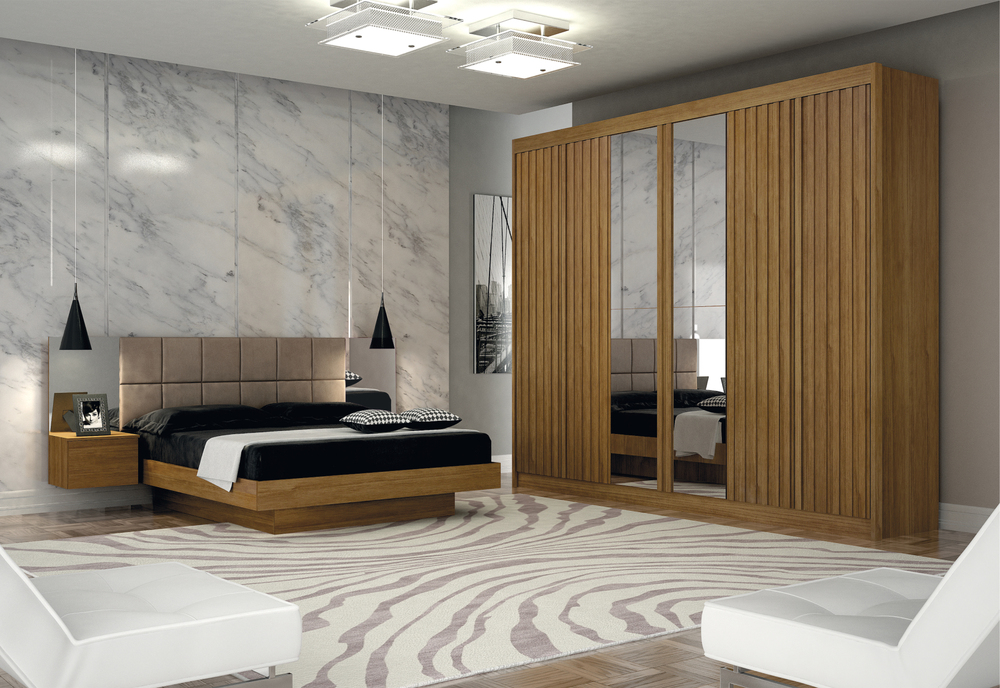 Guarda roupa New Braga 06 Portas Ripado C/ Kit 4 Espelho
