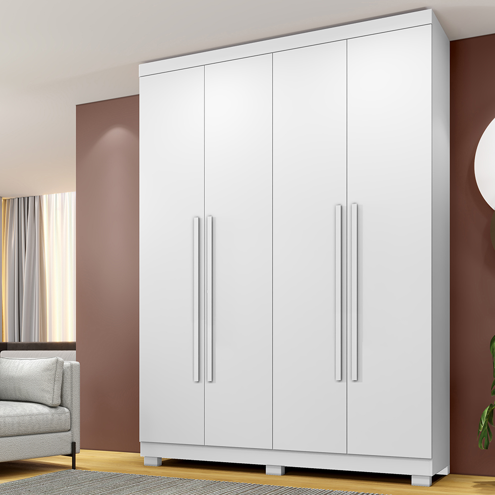 Modelo: Guarda Roupa 4 Portas. Tipo De Pintura: Uv. Estrutura Do Guarda Roupa: Mdp. Medidas Do G.r. (Cxlxa) Cm: 223x47x210 Quantidade De Gavetas: 4. Corrediça Das Gavetas: Telescópicas. Puxadores Das Gavetas E Porta (As): Madeira. Material Dos Pés: Pvc Cabideiro: Alumínio.