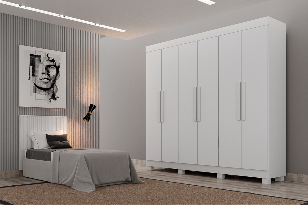 O Roupeiro Delta é ideal para quem procura praticidade, boa capacidade interna e um visual leve, que se adapta facilmente a diferentes estilos de dormitório. Seu design clean valoriza o ambiente e traz uma sensação de organização e equilíbrio ao espaço.