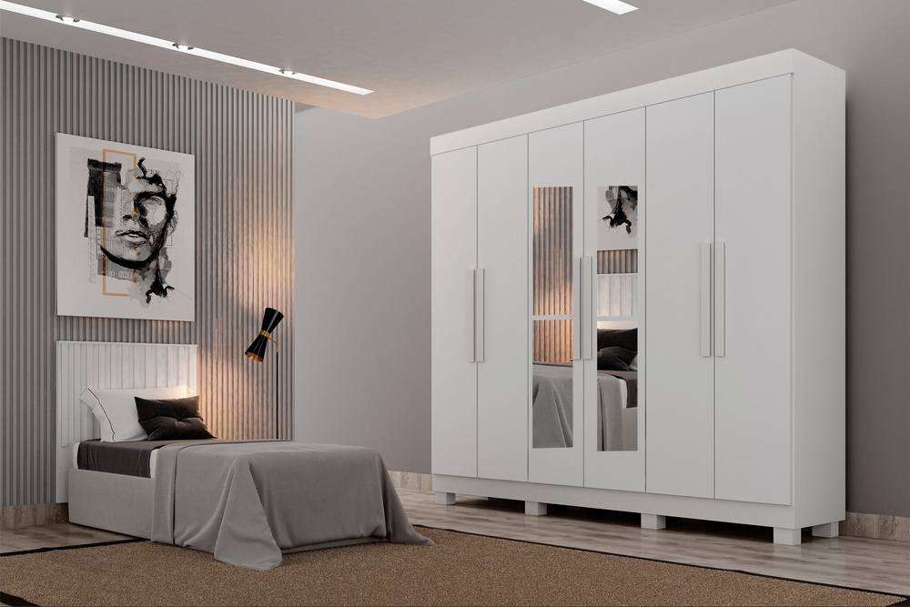 O Roupeiro Delta é ideal para quem procura praticidade, boa capacidade interna e um visual leve, que se adapta facilmente a diferentes estilos de dormitório. Seu design clean valoriza o ambiente e traz uma sensação de organização e equilíbrio ao espaço.
