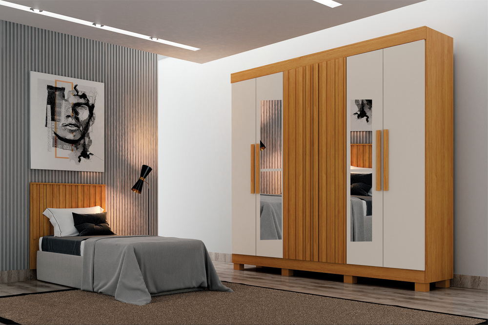 Guarda-Roupas 6 Portas c/ portas Ripadas Delta com Espelho