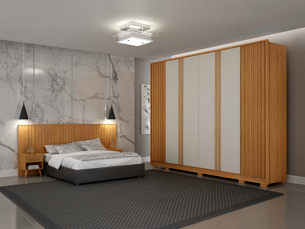 O Guarda-Roupas Evo é a escolha certa para quem valoriza design marcante, funcionalidade e qualidade. Com visual moderno e painéis frisados que trazem movimento e elegância ao móvel, ele se destaca facilmente no ambiente, deixando o dormitório mais sofisticado e acolhedor.