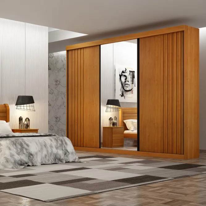 Guarda Roupas Londrina Ripado 3 Portas com 1 Porta de Espelho Valverde