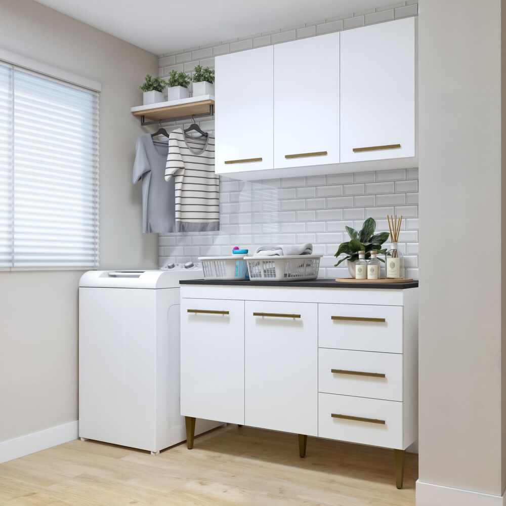 Lavanderia Modulada Armário Aéreo e Balcão Brasilia - Kaiki Móveis