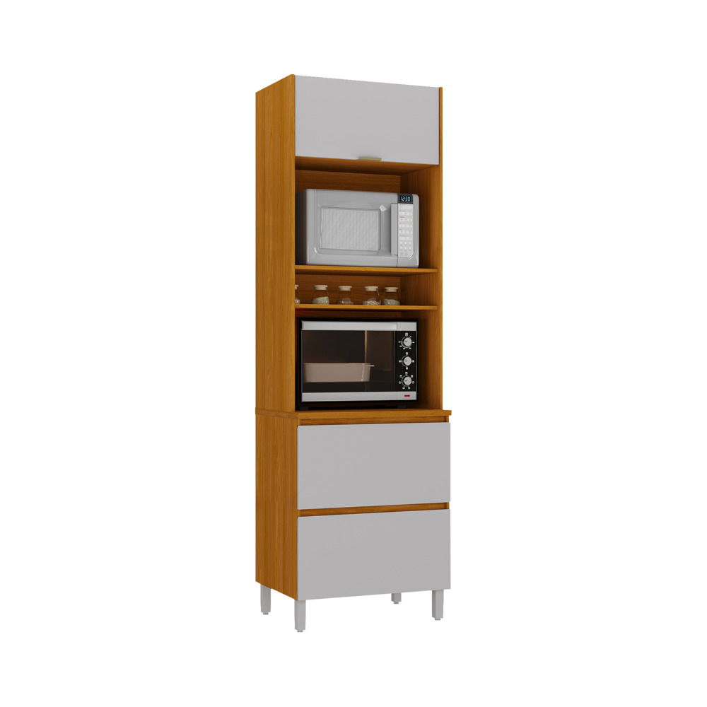 Paneleiro Itatiaia Lumina Nicho para 2 Fornos com 2 portas 1 Gaveta e nicho, corpo em MDF 1,5cm pintado, portas em MDF 1,5cm, caixas em papelão revestidas com plástico termo retrátil, corpo em chapa MDF pintado padrão madeirado e portas em chapa MDF.