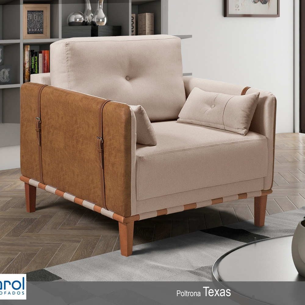 A Poltrona Texas é uma peça que traduz bom gosto e personalidade. Com uma combinação moderna de tecido nobre, couro híbrido ou courino e detalhes em madeira, ela oferece um visual arrojado e contemporâneo. Seu design diferenciado se adapta a diferentes estilos de decoração, valorizando desde ambientes residenciais até corporativos com elegância.