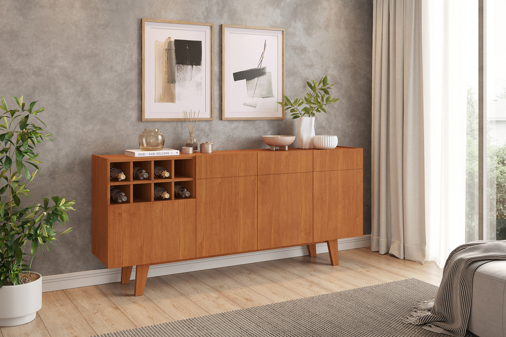 Buffet Duna 3 Portas 1 Gaveta e Adega Mavaular O Balcão Buffet Duna com Adega 3 Portas 1 Gaveta é ideal para você que quer deixar sua sala de jantar ou sala de jantar com um dsigner moderno e sofisticado. Altura: 81,5CM Largura:180CM Profundidade:37,3CM Material do Tampo: MDP Material da Estrutura: mdf/mdp Necessita Montagem: Sim Sistema de Montagem: Parafusos, cavilhas e Minifix. Peso Suportado nos Nichos: 2 Quantidade de Nichos: 8 Quantidade de Pés/Sapatas: 4 Revestimento/Acabamento: Pintura uv Quantidade de Gavetas: 1 Peso suportado no topo (Kg):30 Espessura do Tampo (mm):15 Escala de Brilho: Brilho e Fosco Garantia (dias):90 Material das Dobradiças: Metálica Material das Corrediças: Telescópica Peso Suportado nas Prateleiras (kg): 5 Peso Suportado nas Gavetas (kg): 5 Grau de Dificuldade da Montagem: Médio Quantidade de Prateleiras: 01 Prateleira Quantidade de Portas: 3 Portas Marca: Mavaular Possui Vidro: Não Possui Prateleiras: Sim Possui Portas: Sim Possui Espelhos: Não Quantidade de Portas: 3