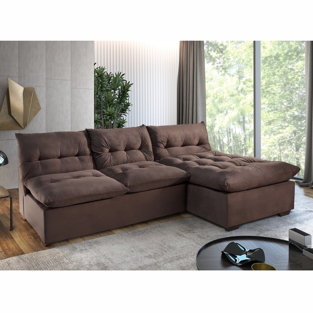 Já pensou em um sofá para aproveitar os melhores momentos? Super conforto garantido com pillowtop 100% fibras de silicone. O modelo perfeito para relaxar e curtir o seu filme ou a sua série favorita. Chaise para um repouso absoluto! Estrutura em madeira tratada e seca em estufa (anticupim) Especificações Técnicas: Altura dos Pés; 4 cm Altura do Assento até o Chão; 60 cm Altura do Encosto; 52 cm Altura; 90 cm Largura; 210 cm Profundidade; 155 cm Material dos Pés; Madeira Material da Estrutura; Eucalipto Revestimento do Braço; Não Necessita Montagem; Sim Complexidade da Montagem: Baixa: pode ser montada por uma pessoa sozinha Recomendações de Uso, Manutenção e Limpeza; Não use produtos químicos, eles podem danificar o revestimento Almofada do Assento; Fixa Tipo de Sofá: Comum Tipo de Encosto; Fixo Tecido Predominante; Suede Quantidade de lugares: 03 Suporta Até; 120 kg Possui Rodízio; Não Possui Pés; 08 Possui Apoio para Braços; Não Pet Friendly; Não Estilo; Moderno Enchimento do Encosto; Fibra Siliconada Enchimento do Assento; Fibra Siliconada Possui Percintas Elásticas; Sim Rodízio com Trava; Não Densidade do Assento; D-28 Firmeza do Assento; Macio Almofada do Encosto; Fixa Modelo: Sofá Bipartido Ambiente Principal; Sala de Estar
